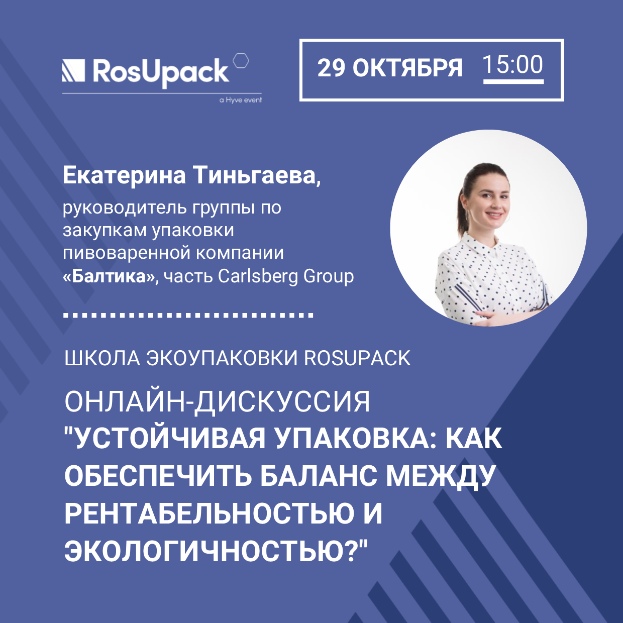 Сегодня, 29 октября 2020 года, состоится онлайн-дискуссия «Устойчивая упаковка: как обеспечить баланс между рентабельностью и экологичностью», организованная командой выставки RosUpack.