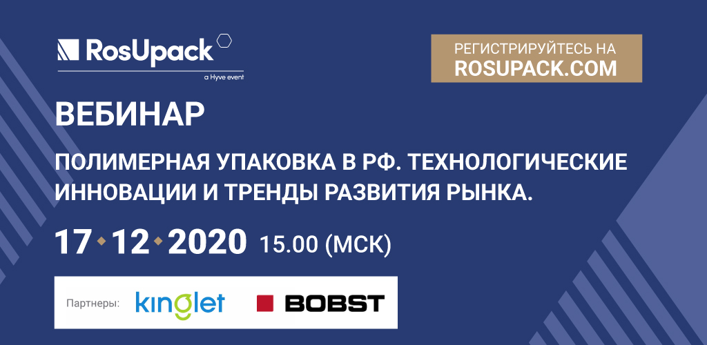 Регистрируйтесь на онлайн-встречу Экспертного клуба RosUpack ПОЛИМЕРНАЯ УПАКОВКА В РФ. ТЕХНОЛОГИЧЕСКИЕ ИННОВАЦИИ И ТРЕНДЫ РАЗВИТИЯ РЫНКА. ИТОГИ 2020 и узнайте о последних тенденциях развития отрасли полимерной упаковки от ведущих экспертов.