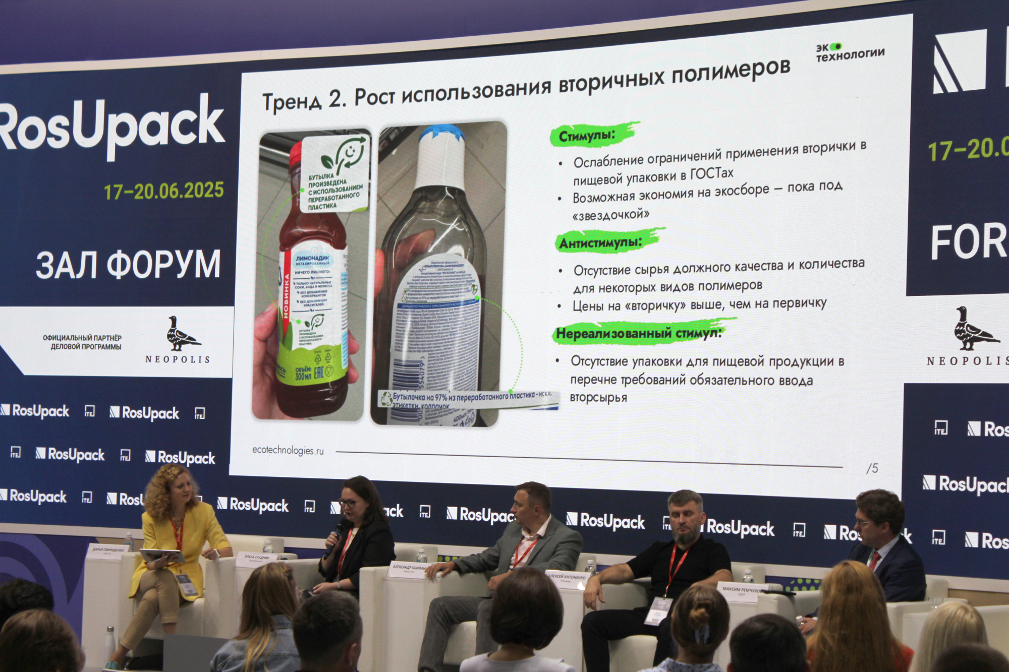 18 июня в рамках деловой программы международной выставки RosUpack 2025 состоялась Аналитическая форсайт-сессия «Устойчивая упаковка: видение будущего через анализ прошлого и настоящего». Сессия прошла в два этапа: сначала говорили об устойчивой жесткой полимерной таре, затем – об устойчивой гибкой полимерной упаковке.