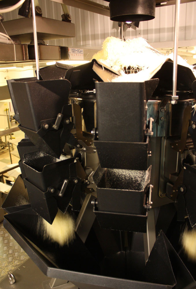 Весовой дозатор от Ishida является уникальным на российском рынке, благодаря специальному тефлоновому покрытию, которое гарантирует, что все виды сыров легко скользят по поверхности дозатора без склеивания и образования комков. Все это увеличивает скорость и точность работы оборудования.