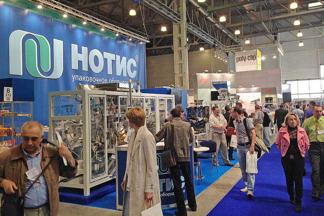В четвертом зале первого корпуса «Крокус Экспо», кроме упомянутых тучных овечьих стад, располагались в основном компании, также предлагавшие упаковочные материалы и тару, но уже из полимеров. Стенд компании «Укрпластик» из Киева, постоянного участника выставки – имел особое значение не столько в упаковочном значении, сколько в политическом. Выходит, что события последнего времени не смогли полностью оборвать связи между нашими странами, компаниями и просто людьми. Фирмы из тоже некогда братской страны – Вьетнама – не частые гости на московских упаковочных выставках. В этот раз был стенд компании Opec Plastics из героической страны, предлагавшей гибкие материалы на основе полимеров. Встречались в этом зале и компании, рекламирующие разнообразную технику. Так компания «Мастер Клей» представляла системы нанесения клея с помощью форсунок.