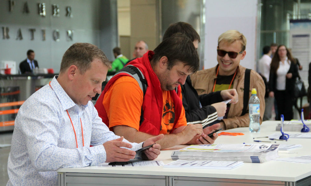 А вот карман, куда надо было укладывать пропуск, оказался снабженным коротким шнуром. В результате проходя «таможню» в виде турникета при входе в зал, приходилось наклоняться, дабы приложить штрих-код к считывающему устройству. Вот и входили посетители буквально с поклонами в каждый из залов. Правда, где-то к концу второго дня работы выставки они проявили смекалку. Бейджики стали болтаться у многих мужчин в районе пояса, а у женщин частенько оказывались привязанными к сумке. Пустяк, конечно, мелкое неудобство, но что интересно: бейджи участников выставки, которые не надо было никуда прикладывать, располагались на более длинном шнуре.