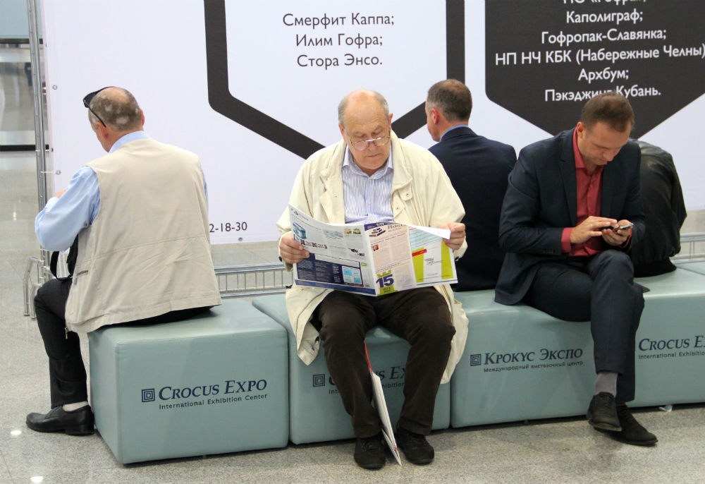 Если крупные предприятия, например, ГОТЭК или ПЦБК (еще один юбиляр), «вели себя» солидно, «излишеств» на стендах не допускали (к ним и так подойдут), то те, что помельче, или с не столь известным именем, старались привлечь внимание посетителей то громкой музыкой из динамиков, то некими сооружениями из освоенного ими материала, стоявшими на площадках. Когда автор этих строк рассматривал шляпу из гофрокартона на стенде Павлово-Посадского гофрокомбината, вспомнил о том, что этот материал был первоначально создан для предохранения головных уборов в шляпных коробках.