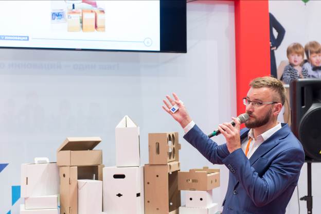 Ключевым событием Дня Клиента стала презентация новых продуктов. Впервые на RosUpack главный технолог предприятия Андрей Авагимян представил бумагу для гофрирования PRIME-Fluting. Инновационная бумага производится из целлюлозы высокого выхода – древесины, подвергнутой неглубокой химической обработке, и вторичного сырья.
