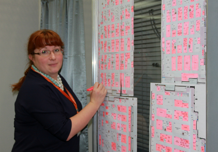 Наталья Медведева, руководитель дирекции ITE Москва, объясняет диспозицию: «Это план расположения стендов текущего года. Розовым цветом отмечены стенды компаний-участниц RosUpack, которые уже подали заявку на участие в выставке на следующий год. Для компаний, подающих заявку на следующий год в течение этой выставки, организаторы предусмотрели специальные условия. В следующем году выставка RosUpack 2017 переезжает в третий павильон (14-15 залы). Там, разумеется, будет другое расположение стендов. Те компании, которые сейчас подают заявки на участие в RosUpack в 2018 г., получают приоритет при расстановке стендов и могут рассчитывать на лучшие места. Если посмотреть на план, то примерно восемьдесят процентов стендов уже окрашено в розовый цвет».