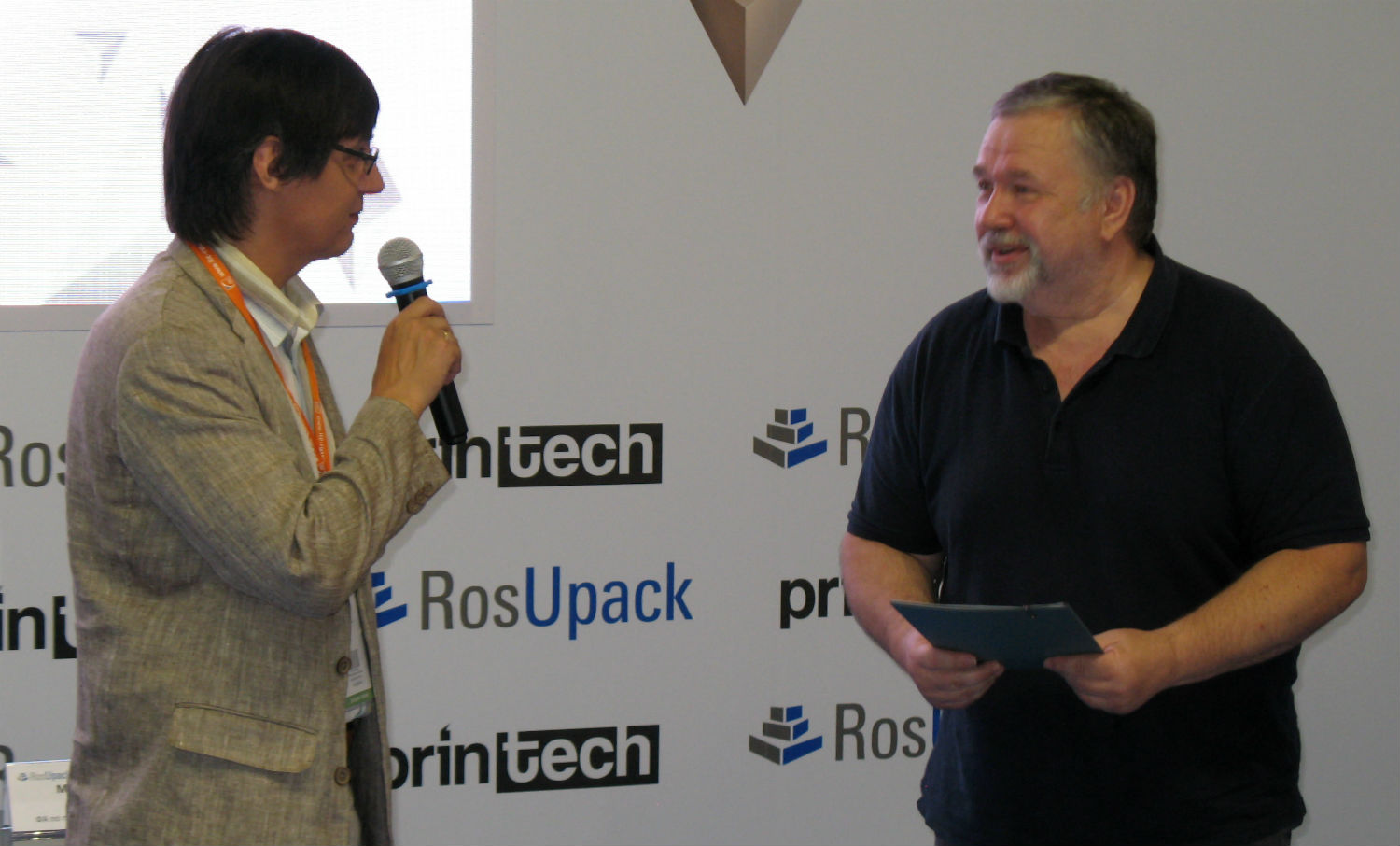 Дипломы вручил представитель агентства Михаил Арзаманов, а получил их за своих коллег президент Союза полиграфистов Санкт-Петербурга Сергей Радванецкий. Награждение состоялось на первом мероприятии деловой программы Printech 2018 – форуме, посвященном влиянию цифровых технологий на экономику полиграфии.