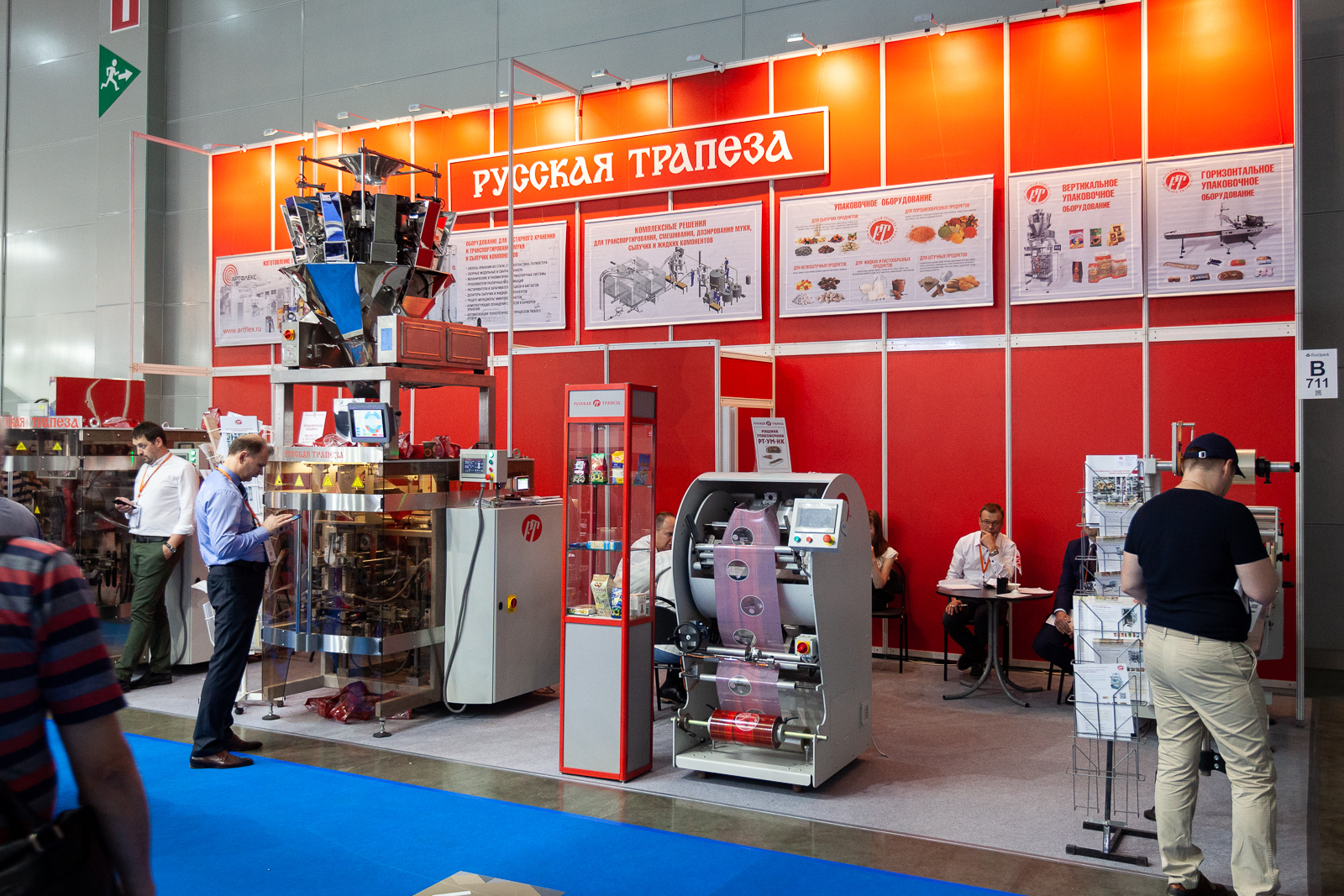 На стенде «Русской Трапезы» демонстрировались пять экспонатов, о которых мы уже рассказывали ранее. У «Бестрома» один – фасовочный автомат, состоящий из VFFS-машины «Бестром-420» и шнекового дозатора.