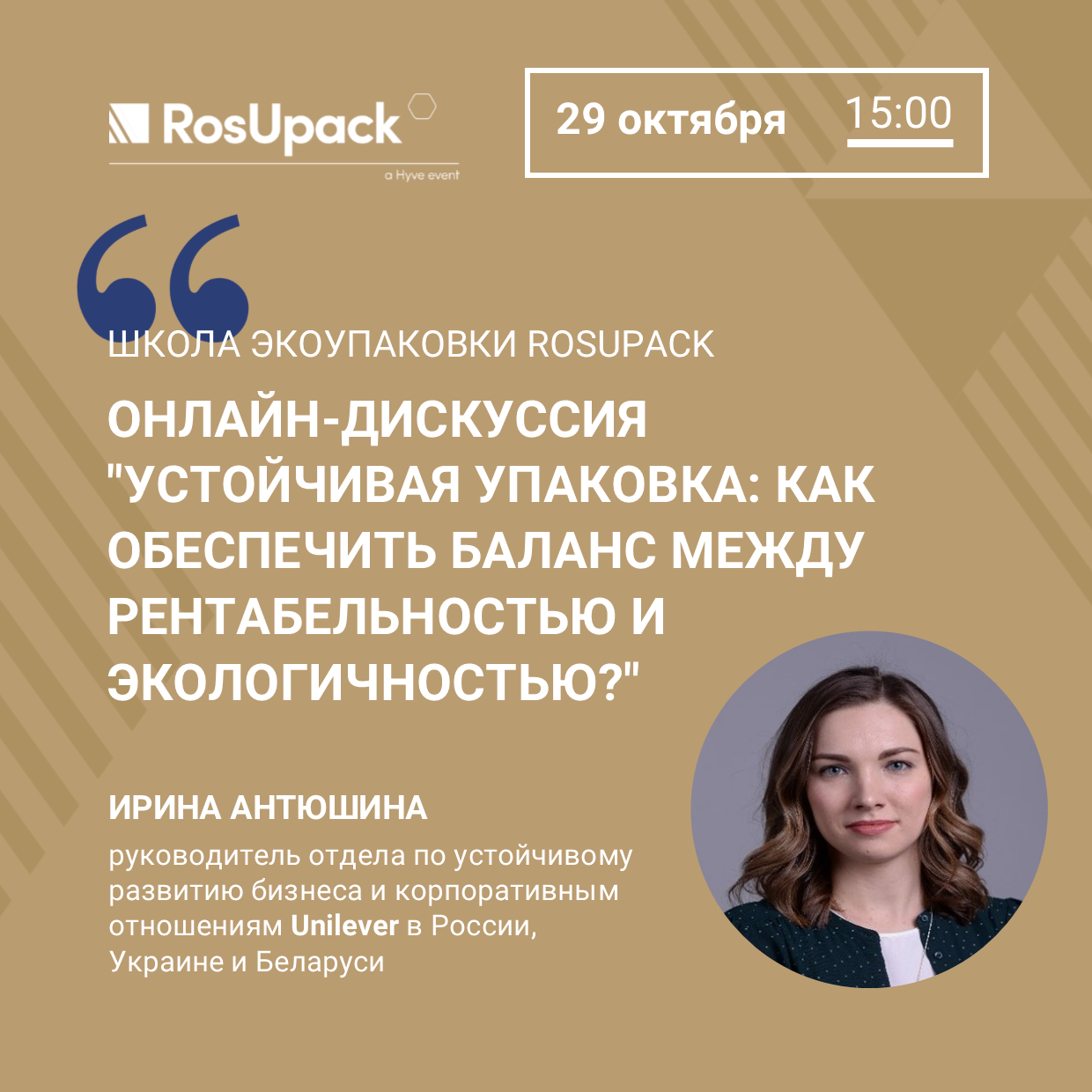 В четверг, 29 октября 2020 года, состоится онлайн-дискуссия «Устойчивая упаковка: как обеспечить баланс между рентабельностью и экологичностью», организованная командой выставки RosUpack.