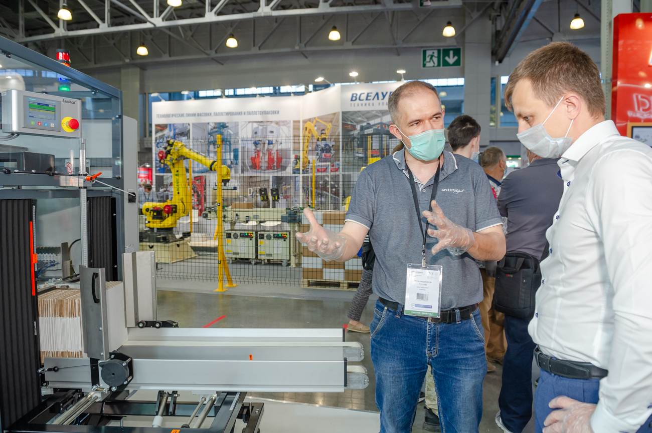 Отрадным и прогрессивным явлением было то, что если раньше ПР показывались «в одиночку», то теперь в составе роботизированных комплексов. И если раньше чаще иностранными компаниями, то сегодня отечественными предприятиями, в основном и создающими эти комплексы. Правда, увы, пока ещё чаще из импортных компонентов. На выставке было несколько таких комплексов, создающих групповые упаковки, в основном на поддонах.