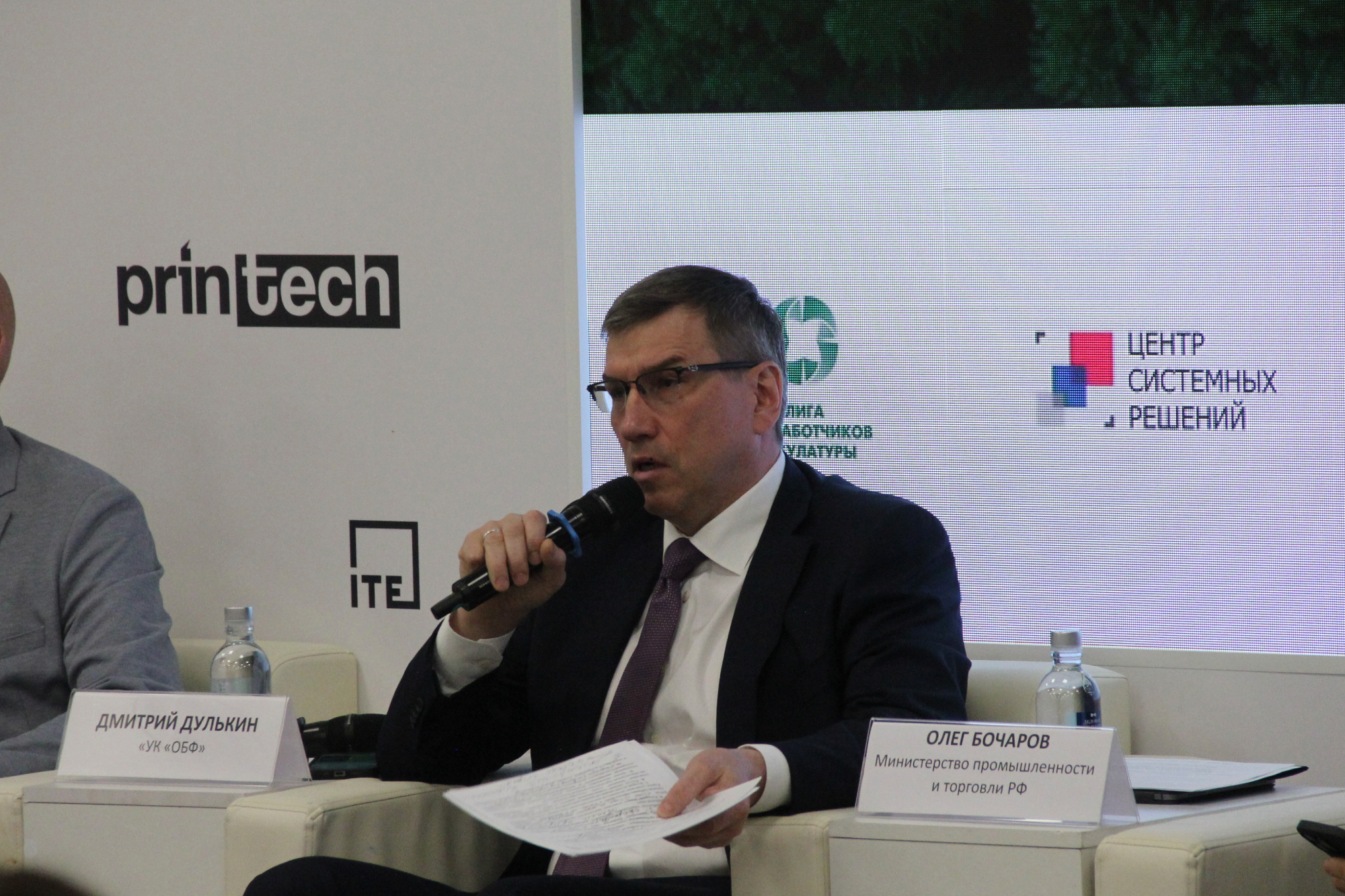 В своем выступлении Олег Бочаров отметил, что министерство видит интерес инвесторов к упаковке. Однако при этом различные виды упаковки относятся к ведению разных департаментов министерства, которые не всегда согласуют свою деятельность. По мнению Олега Бочарова, следует создать специальный департамент, который объединил бы в своем ведении всех упаковщиков. Отметив, что имеется поручение Президента РФ – актуализировать стратегию в отношении лесопромышленного комплекса, Олег Бочаров подчеркнул необходимость разработки стратегии отрасли. При этом подраздел упаковки должен быть самостоятельным, поскольку отрасль упаковки является «вытягивающей» для лесной промышленности.